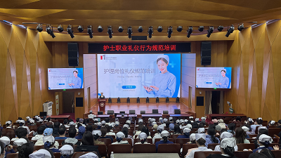 为规范护理岗位人员的行为举止、提升专业形象,护理部于2023年11月16日在学术报告厅举办了护理岗位礼仪规范专项培训。本次会议由护理部副主任周晶娟主持,近三年入职的护士、在院护生及研究生等200余人参加了此次培训。