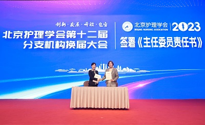陆宇晗主任从事肿瘤护理近30年,兼任中华护理学会肿瘤护理专业委员会主任委员,在北京护理学会第十一届肿瘤专业委员会中担任主任委员,此次连任并代表各分支机构主任委员签署责任书。她表示,将继续凝聚肿瘤护理专委会全体成员的智慧和力量,开拓创新,砥砺前行,在肿瘤专科护士培训、学术交流、编写专业书籍及科普教育等方面,为推动首都肿瘤护理事业的发展做出不懈努力!
